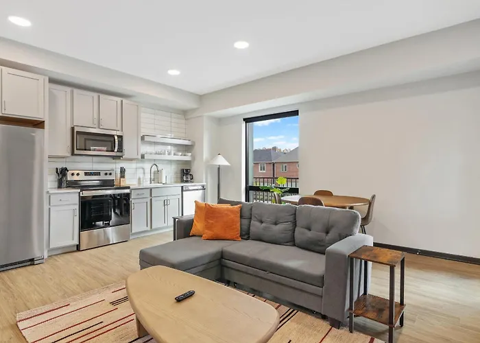 Descubre la comodidad y modernidad de Cozysuites Mass With Parking Lounge & Roof Deck #32, un refugio ideal para tus estancias en Indianápolis. Situado a solo 25 kilómetros del Aeropuerto Internacional de Indianápolis, este establecimiento se convierte en la opción perfecta para quienes buscan confort y accesibilidad.